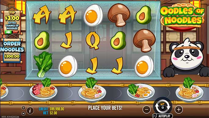 Tại Oodles of Noodles kết hợp biểu tượng ẩm thực, mỗi vòng quay như một đơn đặt hàng và người chơi sẽ được phục vụ thật nhanh. Chỉ sau vài giây ngắn ngủi kết quả hiển thị rõ, thanh toán liền tay nhận ngay phần thưởng.
